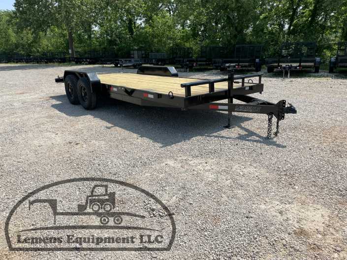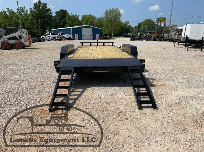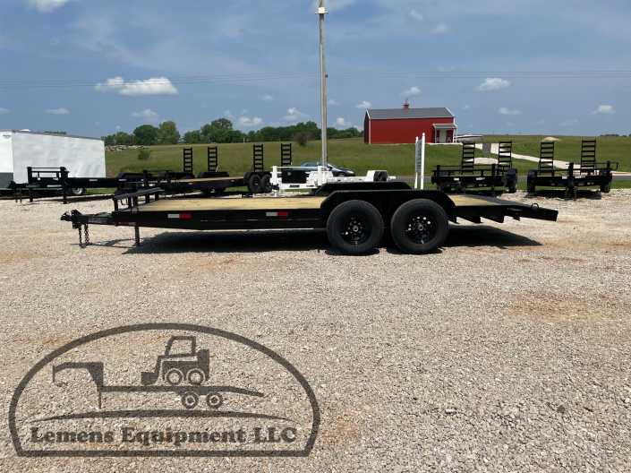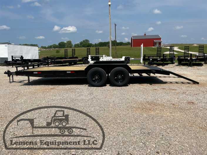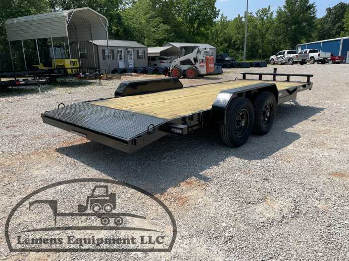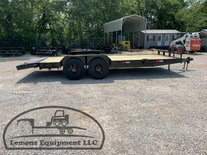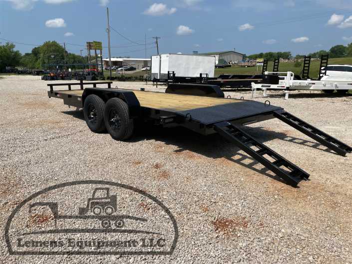 This is a tandem axle 12k heavy duty bumper pull flatbed trailer in black color. It is 20ft long and 82 inches wide between the fenders, and has slide-in ramps underneath. It would work good to haul a car, truck, skid steer, track loader, mini ex, tractor, or fork lift. It is a good deal and the price is cheap. See more details below, thanks!