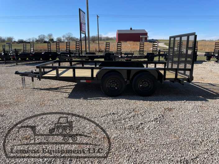 This is a tandem axle heavy duty bumper pull utility trailer with a brake in black color. It is 14ft long and 76 inches wide between the fenders, and has a spring assisted 4ft gate on the back. It would work good to haul a tractor, scissor lift, atv, four wheeler, utv, side by side, sxs, lawn mower, zero turn, motorcycle, dirt bike or trike. It is a good deal and the price is cheap. See more details below, thanks!