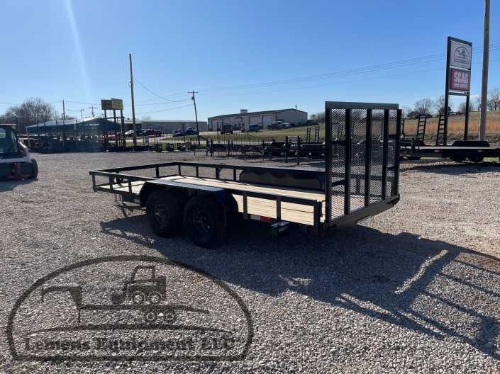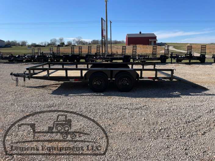 This is a used tandem axle heavy duty bumper pull utility trailer in black color. It is 16ft long and 76 inches wide between the fenders, and has a spring assisted 4ft gate on the back. It would work good to haul a tractor, scissor lift, atv, four wheeler, utv, side by side, sxs, lawn mower, zero turn, motorcycle, dirt bike or trike. It is a good deal and the price is cheap. See more details below, thanks!