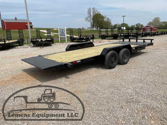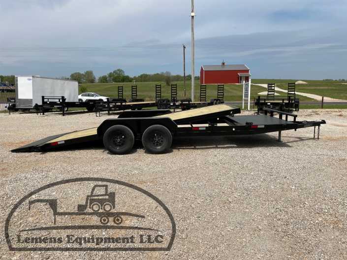This is a tandem axle 7k bumper pull split tilt trailer in black color. It is 22ft long and it would work good to haul a car, truck, skid steer, track loader, mini ex, tractor, fork lift, and scissor lift. It is a good deal and the price is cheap. See more details below, thanks!
