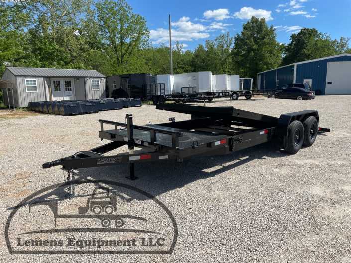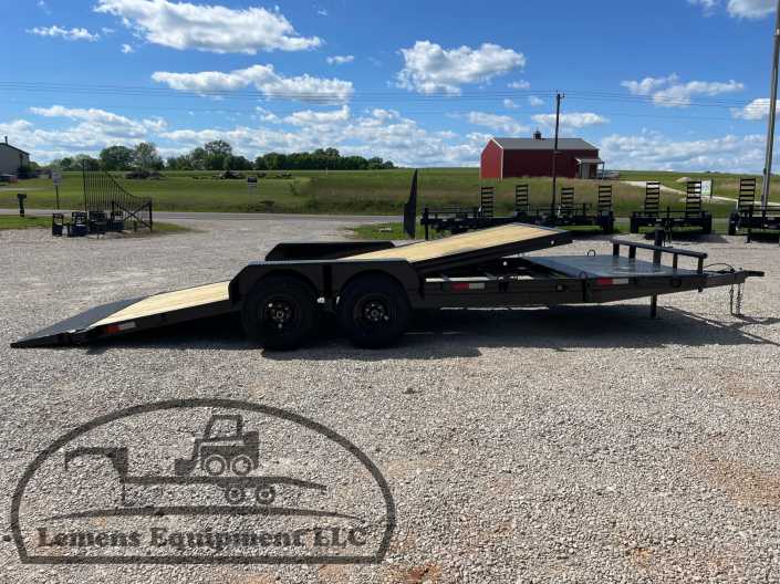 This is a tandem axle 10k bumper pull split tilt trailer in black color. It is 22ft long and it would work good to haul a car, truck, skid steer, track loader, mini ex, tractor, fork lift, and scissor lift. It is a good deal and the price is cheap. See more details below, thanks!