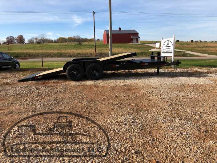 This is a tandem axle 14k heavy duty bumper pull split tilt trailer in black color. It is 22ft long and it would work good to haul a car, truck, skid steer, track loader, mini ex, tractor, fork lift, and scissor lift. It is a good deal and the price is cheap. See more details below, thanks!