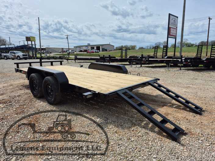 This is a tandem axle 7k heavy duty bumper pull flatbed trailer in black color. It is 16ft long and 82 inches wide between the fenders, and has slide-in ramps underneath. It would work good to haul a truck, skid steer, track loader, mini ex, or tractor. It is a good deal and the price is cheap. See more details below, thanks!