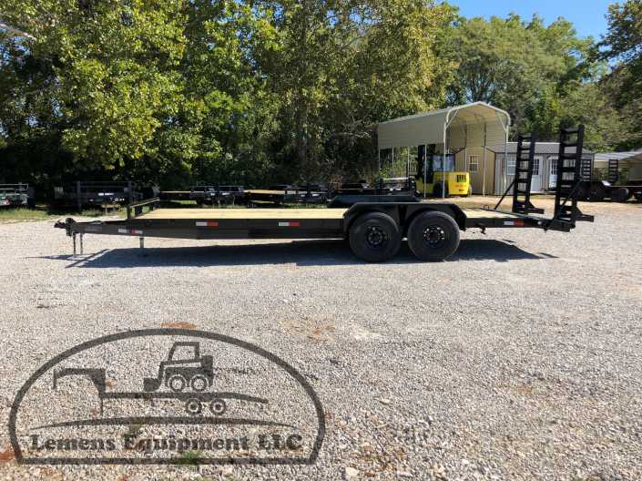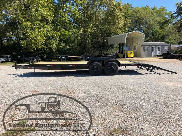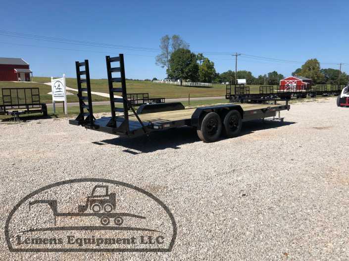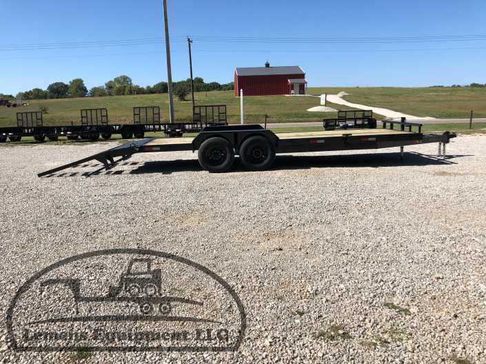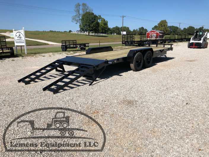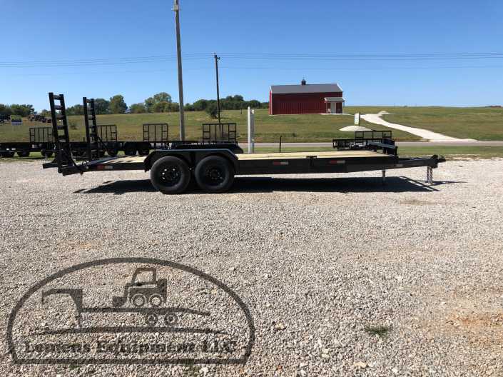 This is a tandem axle 12k heavy duty bumper pull flatbed trailer in black color. It is 22ft long and 82 inches wide between the fenders, and has spring assisted 20 inch wide fold up ramps on the back. It would work good to haul a car, truck, skid steer, track loader, mini ex, tractor, or fork lift. It is a good deal and the price is cheap. See more details below, thanks!