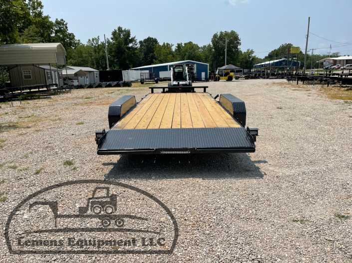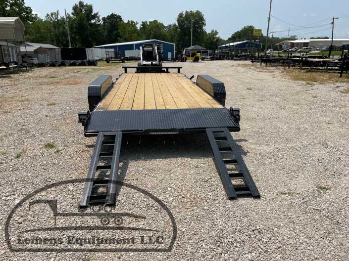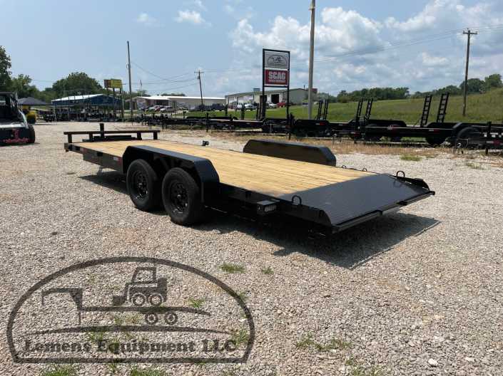 This is a tandem axle 7k heavy duty bumper pull flatbed trailer in black color. It is 20ft long and 82 inches wide between the fenders, has a winch plate, and has slide-in ramps underneath. It would work good to haul a car, truck, skid steer, track loader, mini ex, tractor, or fork lift. It is a good deal and the price is cheap. See more details below, thanks!