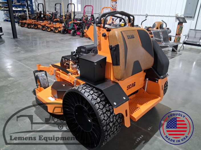 Heavy-duty, single-tube, steel main-frame construction delivers superior strength and ensures years of trouble-free service. The front caster-wheel weldments are replaceable.